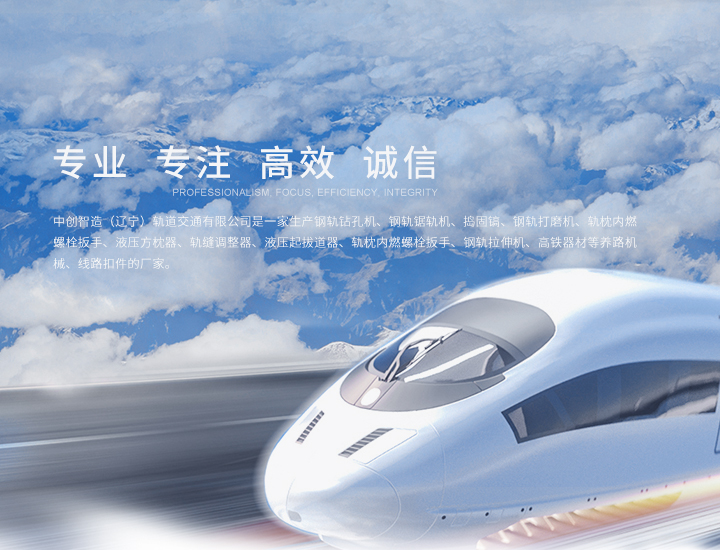 中創(chuàng)智造(遼寧)軌道交通有限公司是一家生產(chǎn)鋼軌鉆孔機、鋼軌鋸軌機、搗固鎬、鋼軌打磨機、軌枕內(nèi)燃螺栓扳手、液壓方枕器、軌縫調(diào)整器、液壓起拔道器、軌枕內(nèi)燃螺栓扳手、鋼軌拉伸機、高鐵器材等養(yǎng)路機械、線路扣件的廠家。